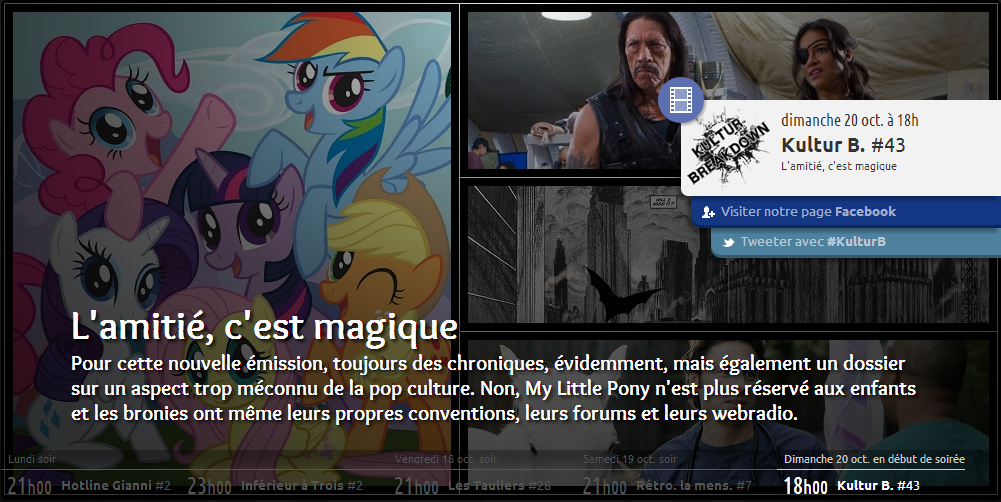 Bonjour à tous ! Ce soir Caly participe à l'émission de webradio Kultur Breakdown pour parler du phénomène My Little Pony et des Bronies !